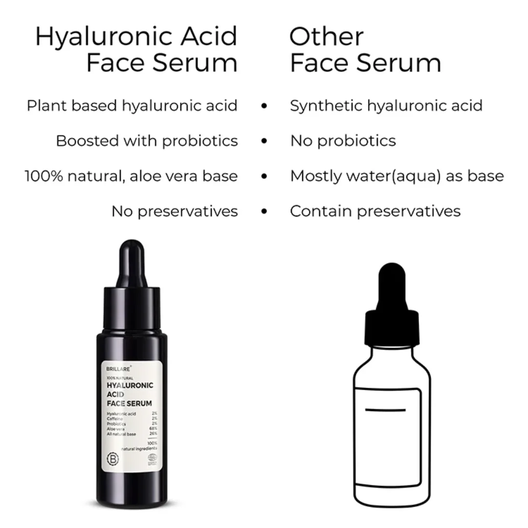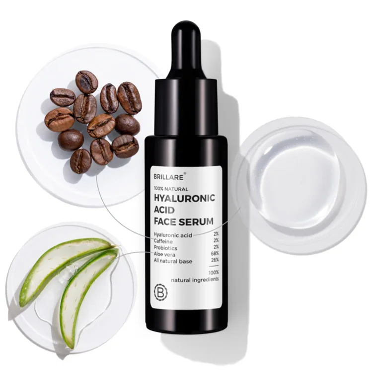 100% natural probiotics serum with hyaluronic acid and caffeine for dry, youthful skin.