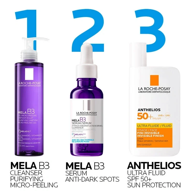 La Roche-Posay Mela B3 Micro-Peeling Gel Cleanser is a daily exfoliating face wash designed to target dark spots, hyperpigmentation, and uneven skin tone. Featuring Melasyl™, PHA, and niacinamide, it gently resurfaces skin and reduces dark spots for a brighter, more radiant complexion, suited for sensitive skin