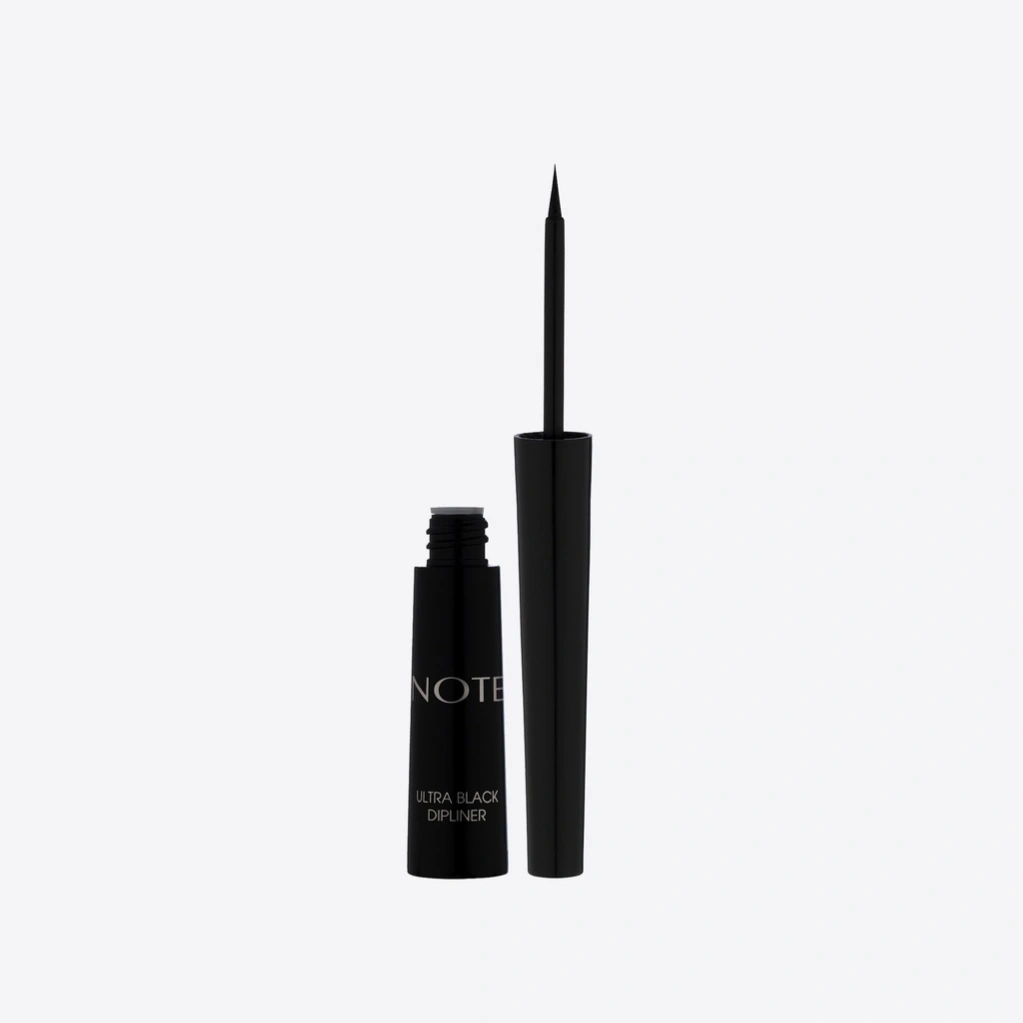Note Ultra Black dipliner helps to master liquid liner application thanks to its professionally-designed, flexible felt-tip applicator. The dense, black quick drying liquid formula instantly creates sharp and defined lines with one sweep. Formulated with sweet almond oil and vitamin E known for their nourishing properties.