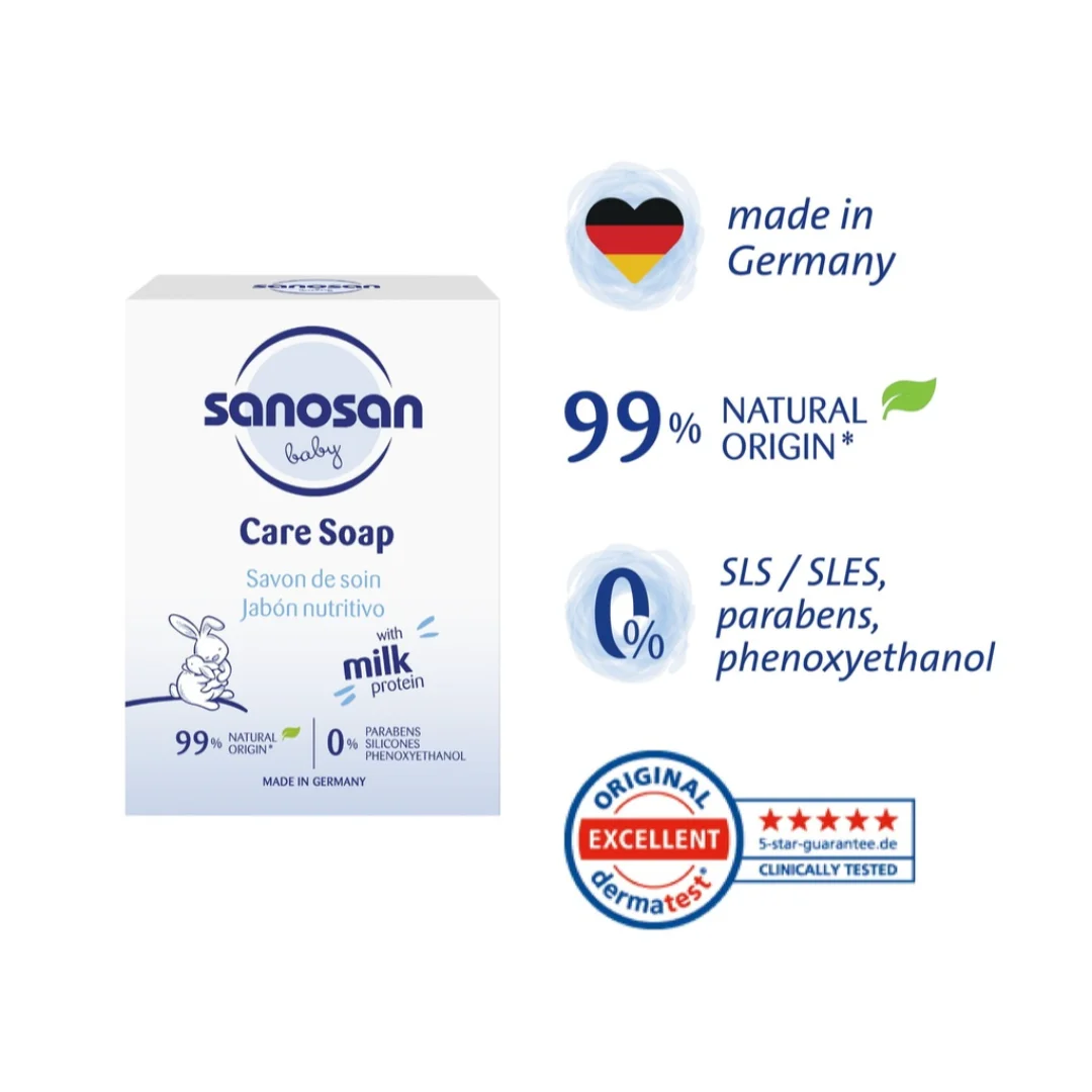 With natural milk protein – the best from milk for healthy baby skin. Mild soap for gently cleaning baby’s skin. Right from the start. With soft, creamy foam.