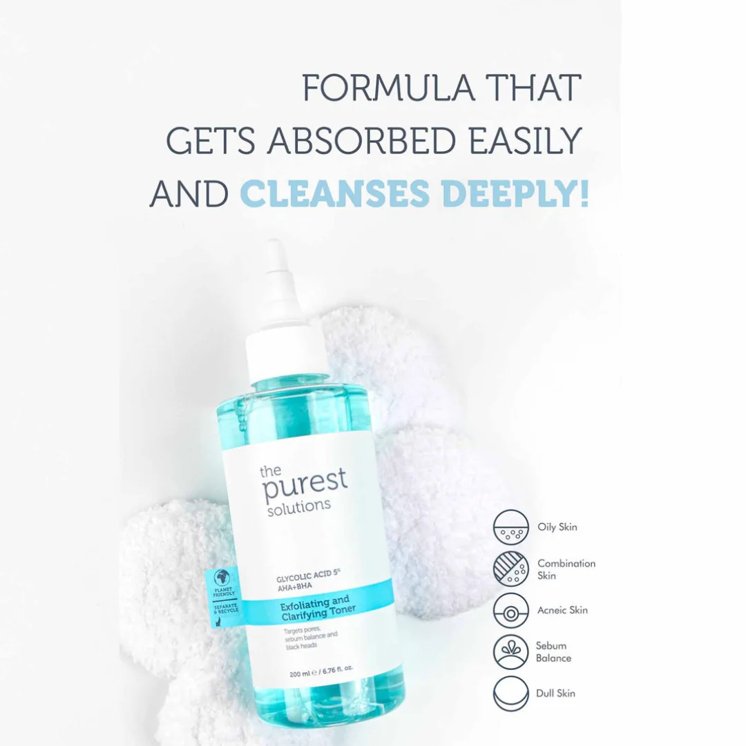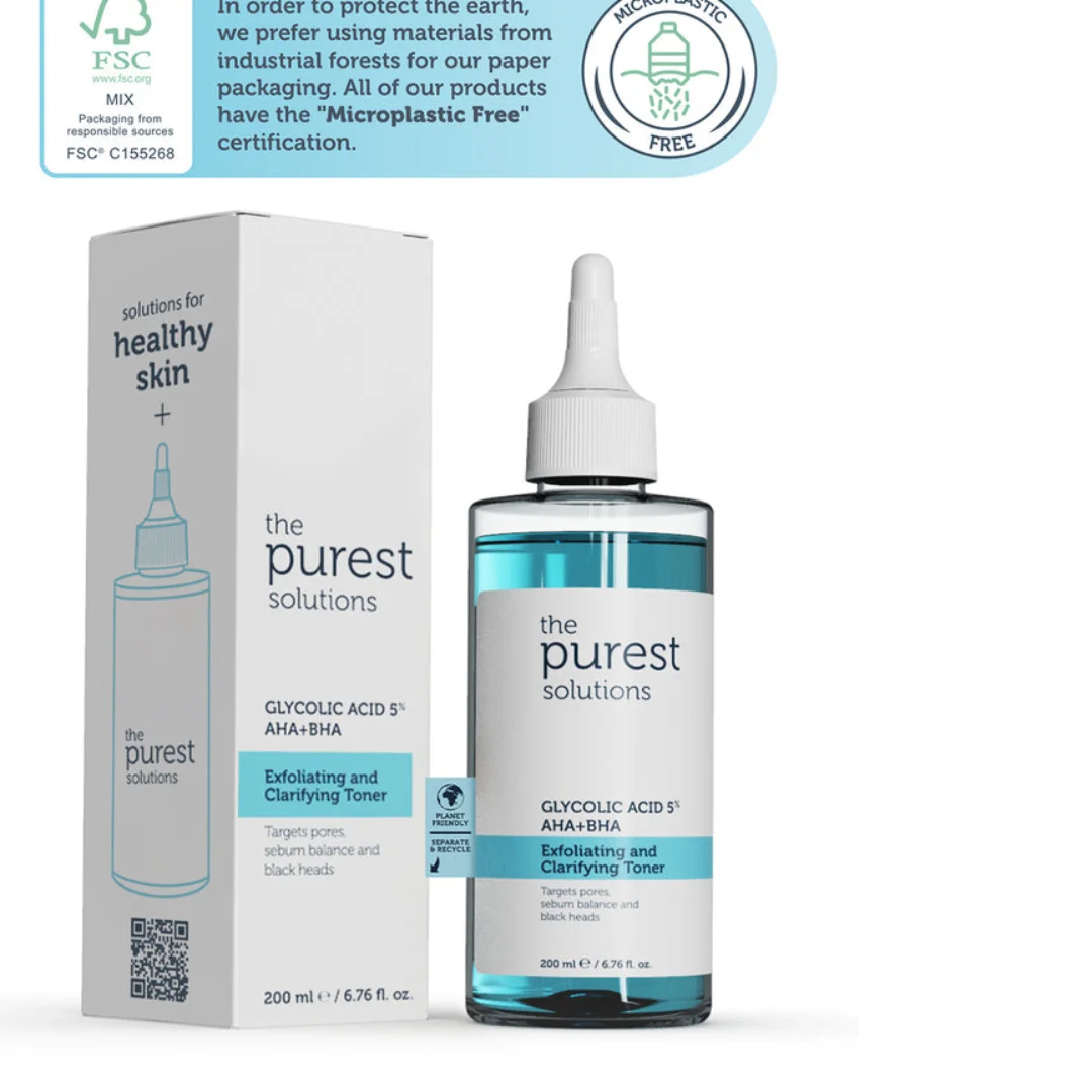 The Purest Solutions Exfoliating and Clarifying Toner Glycolic Acid 5% AHA+BHA - 200ml